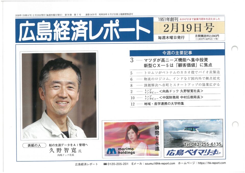 トップインタビューとして、弊社の取り組みが「広島経済レポート」に掲載されました。