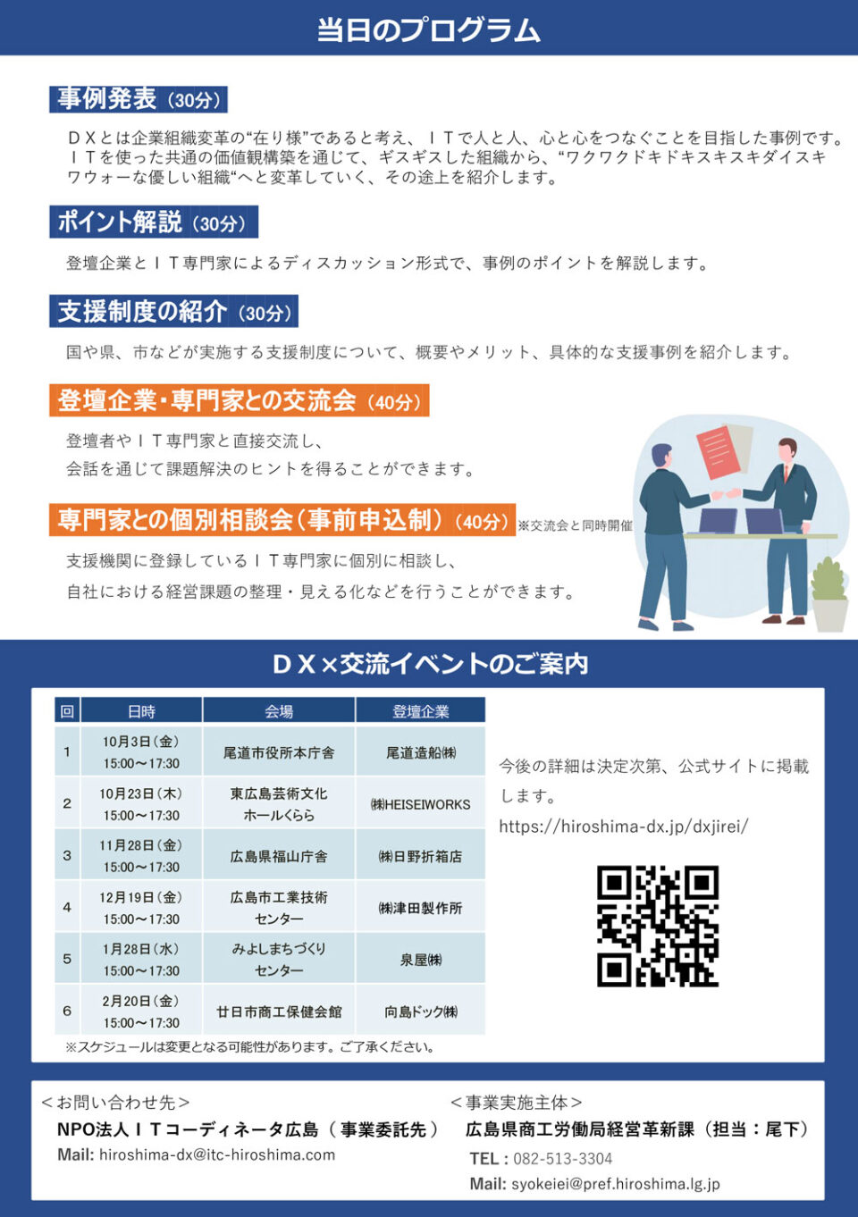本イベントは、広島県内の中小企業を対象に、DX(デジタルトランスフォーメーション)の実践事例や課題を共有し、企業間の学びと連携を促進することを目的として開催されている交流会です。