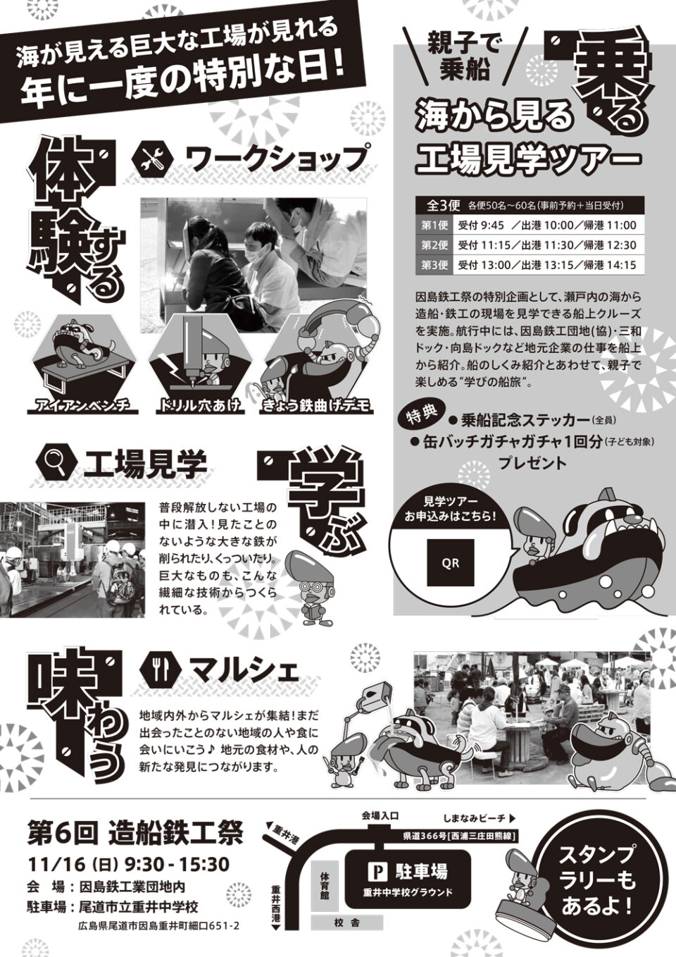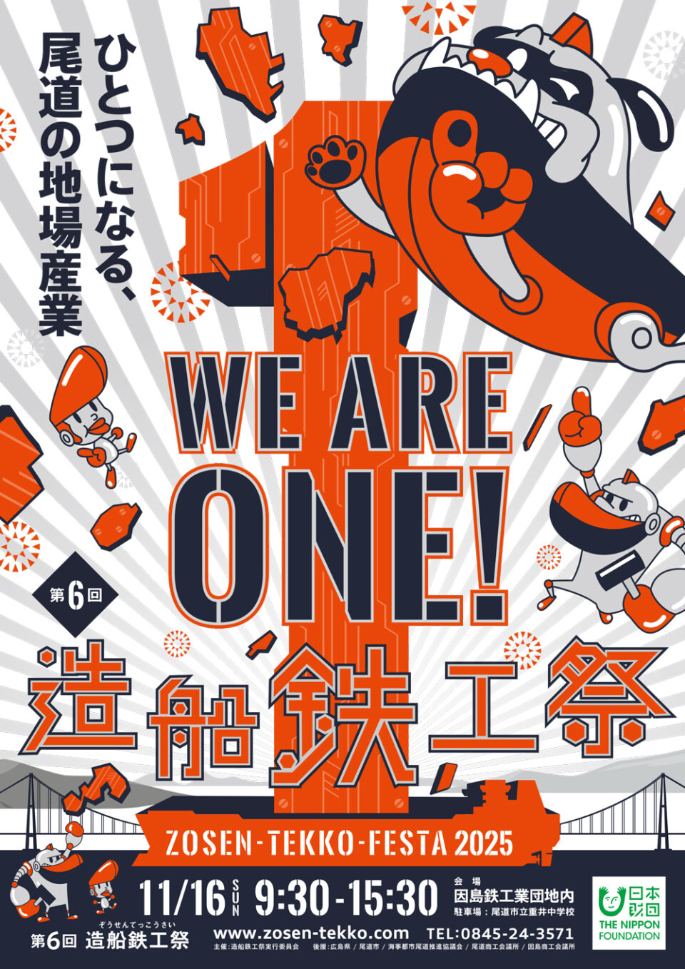 本イベントは、尾道市の造船・鉄工関連企業が結集し、ものづくりの現場を一般に公開する産業フェスとして、地域の誇りと未来をつなぐ「ONE(ひとつ)」をテーマに開催されます。弊社もこの貴重な機会を通じて、地域・産業・人がひとつになる場に参画し、弊社のものづくりの想いを多くの皆さまにお伝えしたいと考えております。